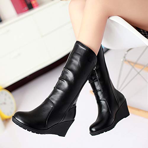 Dieenia Donna Casuale Zeppa A Collo Alto Boots Senza Chiusura Tacco Alto Polacchino Inverno Nero-Dl Numero 33 Eu