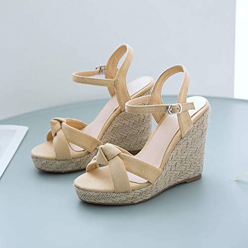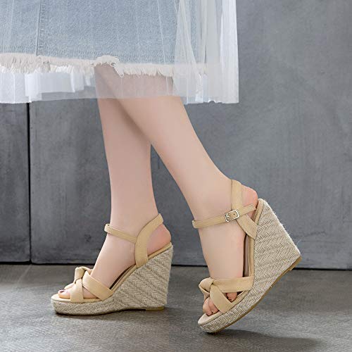 Dieenia Espadrilles Donna Zeppa Sandali Ankel Strap Tacco Alto Sandali Punta Aperta Estate Sandali Festa Beige Numero 43 EU/45CN