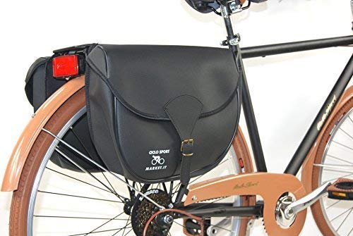 DIEFFE Borsa Bicicletta Simil Pelle/Eco Pelle Doppia - Modello Vintage retrò - Colore Nero