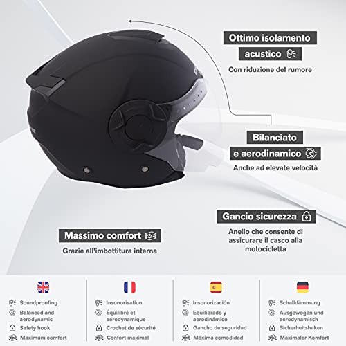 DIEFFE Casco Demjet DF70 Unisex Visiera Sole Sferica Antigraffio Scooter Moto Quad Omologato ECE 22 05 Ventilazione Regolabile Antiappannamento