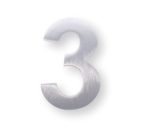 DieHolding H&H GmbH Numero 3 in metallo, in acciaio inox spazzolato, con un'altezza di 4 cm, autoadesivo e inossidabile, per il fissaggio senza forature, adatto come numero civico, numero di stanza, scritta per l'ufficio, simbolo da affiggere a porte e targhetta da parete