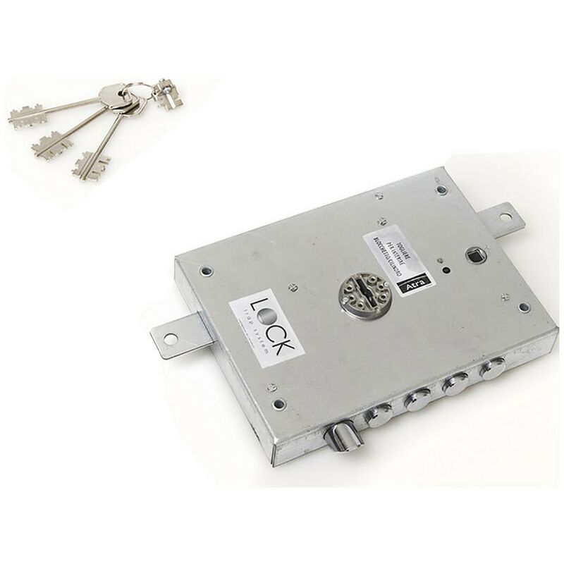 In termopacco. triplice, 4 mandate a scrocco. scrocco azionabile da chiave o maniglia. quadro maniglia superiore 8 mm, interasse 85 mm, 4 catenacci, corsa 42 mm. predisposizione per applicazione aste. scatola mm 152x206. realizzata in acciaio zincato. com