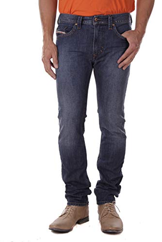 Caratteristiche: Modello: Thavar 0855L Materiale: 100% cotone. Lavaggio in lavatrice. Taglio: sottile e morbido. Dettagli: sottili jeans a cinque tasche di Diesel Chiusura con zip e logo in rilievo. Alta qualità, ottima vestibilità sulla tasca della moneta e sulla tasca posteriore destra, la toppa del logo Tutti i rivetti sono incisi il logo Diesel. cuciture a contrasto alla moda
