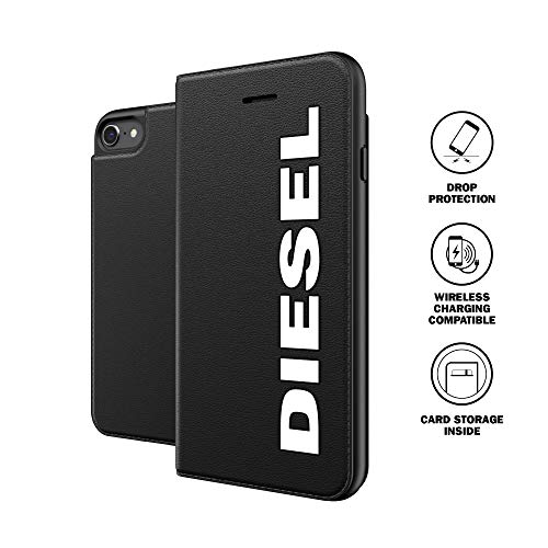 Diesel Custodia per iPhone 6 / 6S / 7/8 / iPhone SE2, a libro, con tasca interna, antiurto, con bordo rialzato, colore: nero/bianco
