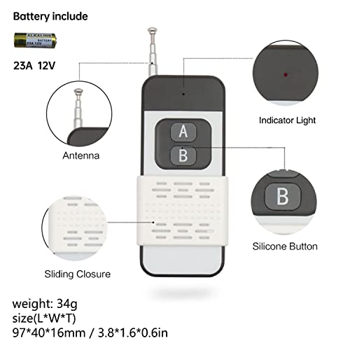 Ottimo design: telecomando wireless RF da 433 MHz. Prestazioni stabili e affidabili con elevata sensibilità di ricezione (> - 97 dBm). Trasmissione del segnale a radiofrequenza. Il segnale forte può passare pareti, pavimenti, porte, pannelli e così via. È più di 150 metri.