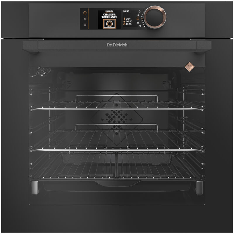 Forno multifunzione integrato De Dietrich DOP7350A con pulizia a pirolisi e classe energetica A +. Calore combinato: Le resistenze del focolare e della volta associate alla resistenza circolare e alla sua turbina consentono di ottenere cotture più omogenee e di risparmiare tempo ed energia poiché non è necessario il preriscaldamento. funzione asciugatura: la funzione permette di disidratare frutta, erbe aromatiche o verdure a temperatura controllata. Prevenire la proliferazione di batteri e preservare minerali e vitamine negli alimenti. Questo processo consente di conservarli per alcuni mesi. Cottura a bassa temperatura: questa funzione esclusiva cuoce carni, pollame e pesce in modo uniforme, regolarmente e delicatamente al di sotto dei 100 °. Questa cottura perfettamente padroneggiata si traduce in piatti di incomparabile tenerezza. Classe energetica (cavità 1): A +. Colore: nero grafite satinato. Energia consumata convezione forzata (kWh) (1a cavità): 1.00. Energia termica