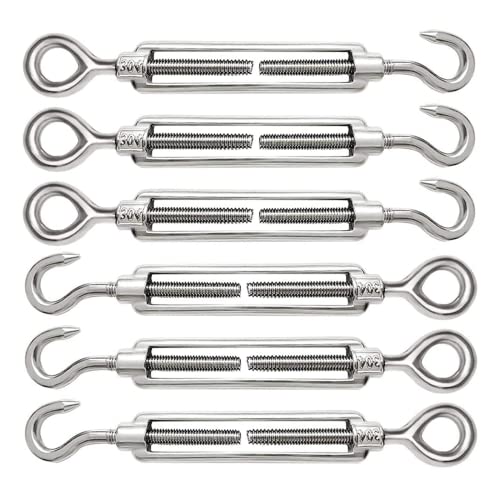 DIFCUL M5 Tenditore Acciaio, 6 Pezzi Tenditore in Acciaio Inox 304 Inossidabile con Gancio E Occhiello per Regolabile Delle Funi Tendalino, Della Fune Metallica e Dello Stendibiancheria