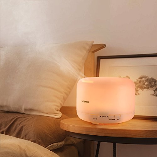 Aiho P1 Diffusore di Aromi, 500ml, Luci LED con 7 Colori, Umidificatore ad Ultrasuoni, Spegnimento Automatico da Asciutto, Ideale per Studio, Stanza, Salone, Ufficio, Yoga, Meditazione