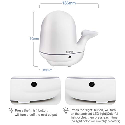Diffusore di Aromi, Cadrim Umidificatore ad Ultrasuoni per Aromaterapia, Diffusore di oli Essenziali, Spegnimento Automatico, LED a 7 Colori, 14 Cambi di Colore, per SPA, casa, ufficio, regalo ecc.