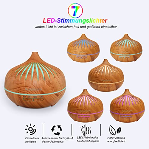 Diffusore di aromi elettrico, con venature del legno, 500 ml, diffusore di aromi, umidificatore con telecomando, 10 oli essenziali, diffusore di aromi a LED, ultra silenzioso, diffusore di aromi