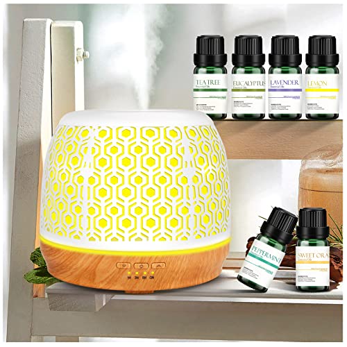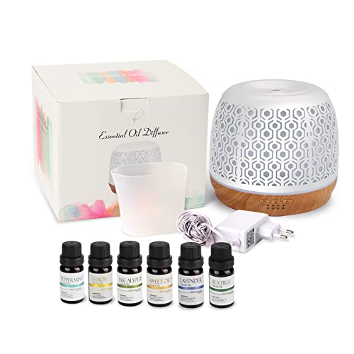 Diffusore di Aromi da 500 ml con 6 oli Essenziali da 10ml Diffusore di Oli Essenziali Metallo Umidificatore Profumatore per Ambiente con 7 colori LED per Casa, Yoga, Ufficio, SPA Perfetto Regalo