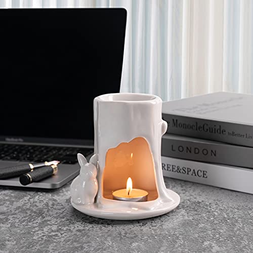 Diffusore di aromi a forma di coniglio, in ceramica, bianco, idea regalo per compleanno, Pasqua, Natale