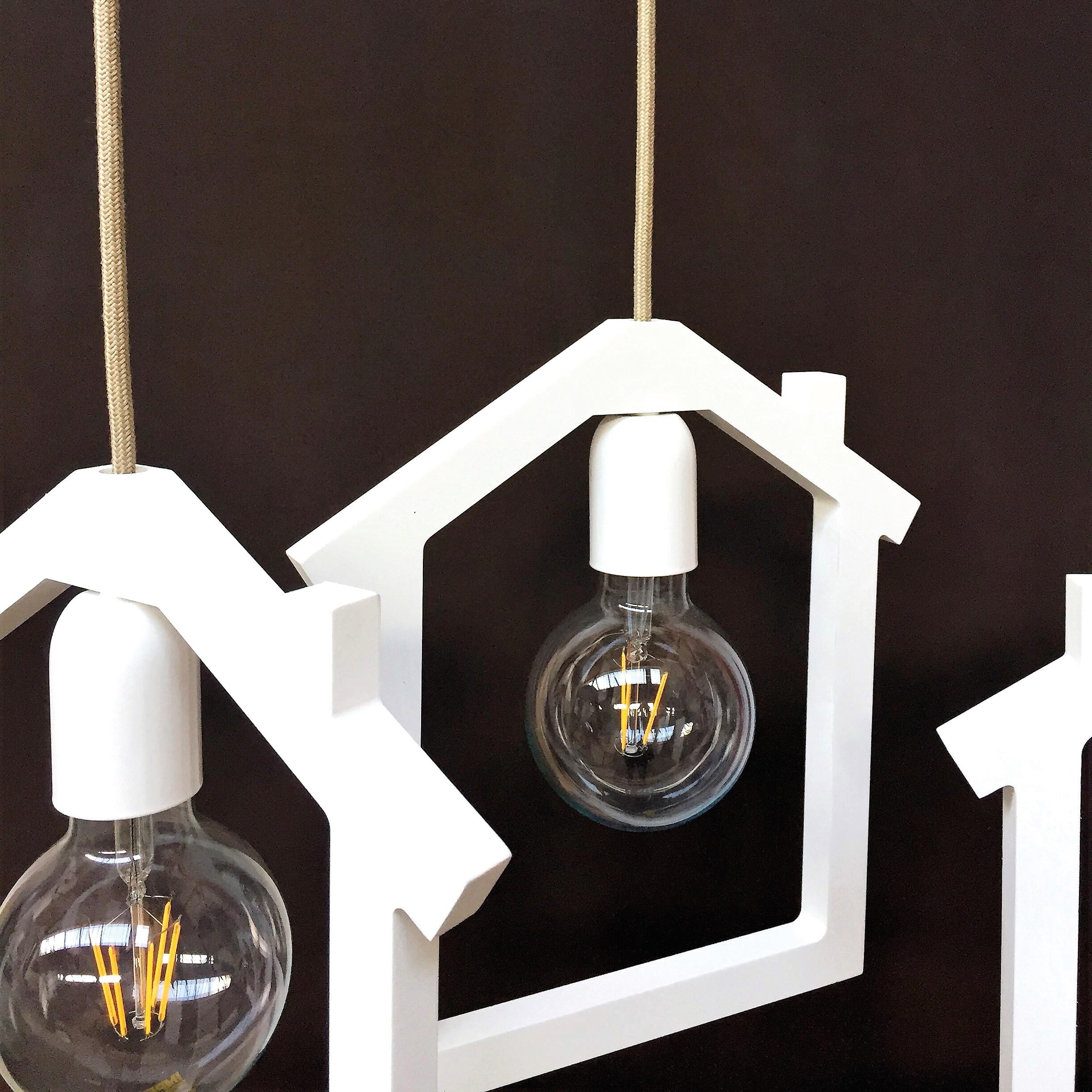 Sagoma per pendel in PVC bianco - casetta. Consigliato per la zona notte bimbi e indicato per illuminare la stanza. Luce diffusa, permette di avere un'illuminazione uniforme in tutto l'ambiente