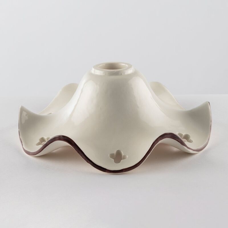 Collezione Papavero UN'INEBRIANTE ATMOSFERA DI CAMPAGNA Diffusore in ceramica smerlata color bianco lucido con filo marrone diam.30 cm. La ceramica è traforata ed è decorata con dei fiori di papavero dalle mani esperte di artigiani secondo antiche tecniche.