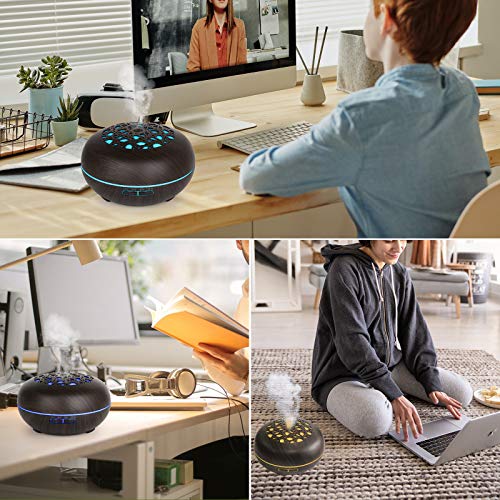WD&CD Diffusore di Oli Essenziali, 550ML Ultrasuoni Umidificatore Diffusore di Aroma Spegnimento Automatico / 7 Luci Colorate / 3 Impostazione Timer/Silenzioso - Venatura del Legno Scuro