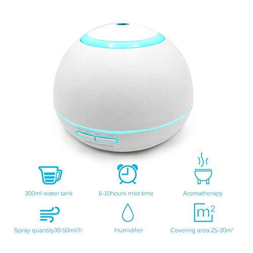Diffusore di Oli Essenziali, Diffusore di Aromi Ultrasuoni 300ml 7 Colori luci LED 4 Impostazioni Timer, Auto Spegnimento,per Camera da Letto, Cucina, Ufficio, Yoga, Spa