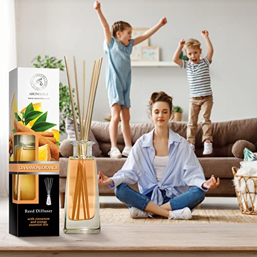 Diffusore a Lamella Cannella & Arancia con Oli Essenziali 100ml - Diffusore di Aromi - Bastoncini Profumati - Profumo Ambiente - Buon Profumo - Fragranza a Lunga Durata