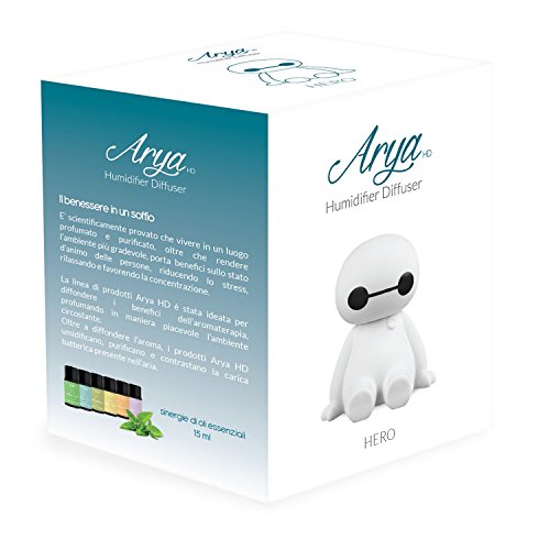 Arya HD Hero, Diffusore Umidificatore in Materiale Infrangibile, Essenze Aromaterapia, Bianco, 10x8x12 cm