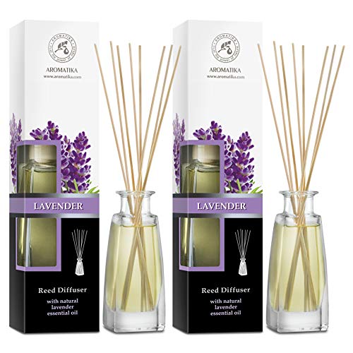 Set di Diffusori a Lamella Lavanda 2x100ml - Profumo Ambiente - Diffusore di Aromi con Olio Essenziale di Lavanda - Buon Profumo - Deodorante per Camera da Letto - Fragranza a Lunga Durata