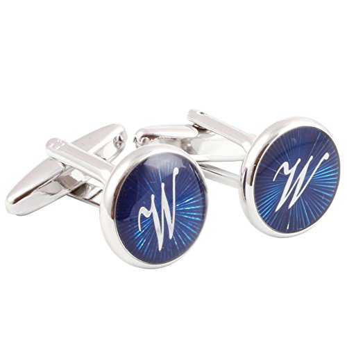 Digabi - Gemelli da uomo placcati in rodio, con iniziali, ideali per matrimoni o affari, 2 pezzi (1 paio), colore: argento, Metallo di base placcato al rodio, colore: Blue W, cod. SY-150223-CD035-A