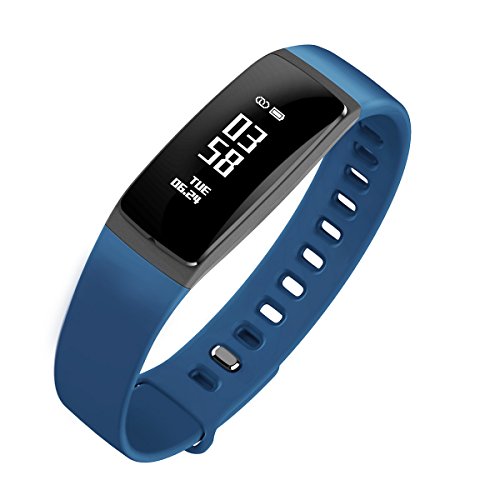 Diggro Db-03 Smart Bracciale di sport bluetooth IP67 pressione arteriosa pédomètre caloria monitor di frequenza cardiaca sonno richiamo periodo fisiologico Call/SMS Promemoria sedentario per Android e iOS, blu