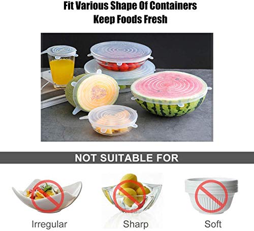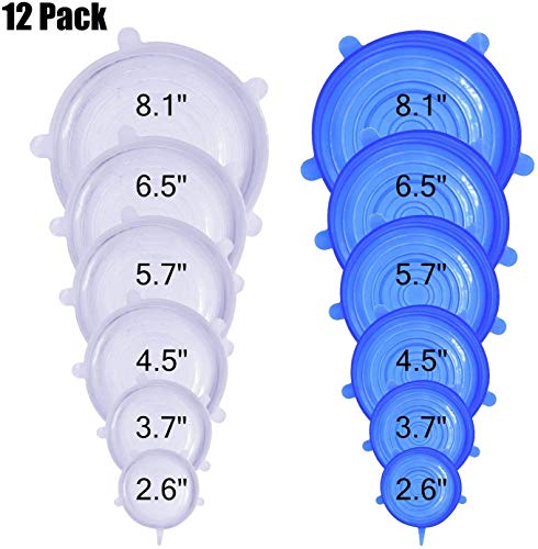 DigHealth 12 Pezzi Coperchi in Silicone, Coperchio Estensibile in Silicone Senza BPA, Coperchio Universale di 6 Misure Differenti per Microonde/Forno/Frigo/Lavastoviglie