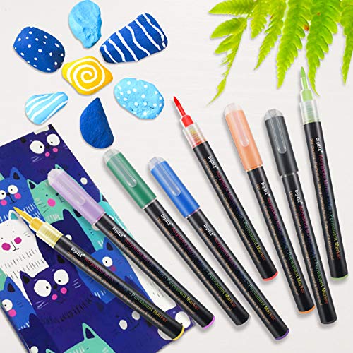 DigiELE Pennarelli a Vernice Acrilica 16 Colori, 0.7-1mm Punta Fine Permanenti Acrilici Marker Penne per Pietre, Ceramica, Vetro, Legno, Metallo, Plastica, Tessuti, Stoffa-Bambini Indelebili DIY Art