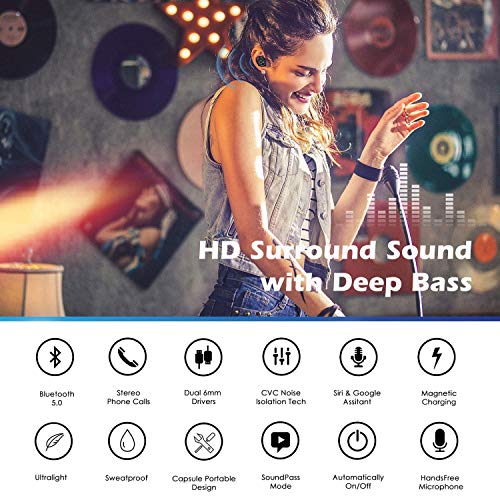 DigiHero Auricolari Bluetooth, Cuffie Bluetooth 5.0 Stereo Auricolare Mini Auricolari a Prova di Sudore Senza Fili con Microfono e Dispositivo di Ricarica per iPhone Samsung