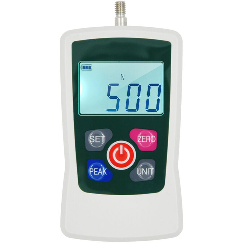 Il misuratore di forza push-pull digitale è uno strumento di test push-pull piccolo, semplice, multifunzionale e di alta precisione, ampiamente utilizzato in apparecchi elettronici, hardware da costruzione, tessuti per l'industria leggera, ricambi auto, industria chimica, macchine elettriche, istituti di ricerca scientifica e altro ancora. È facile da usare e può migliorare efficacemente l'efficienza lavorativa. Caratteristiche: Con sensore interno, alta precisione e alta risoluzione. Carico massimo fino a 500 N/ 50 kg/ 110 libbre. Lo schermo digitale con retroilluminazione migliora l'esperienza di lettura, sia di giorno che di notte. 3 modalità di misurazione per la selezione: tempo reale, picco, primo picco. 4 unità per la conversione: N/ kg/ Lb/ oz. Impostazione della funzione dell'accelerazione di gravità: l'utente può inserire a propria discrezione il valore accurato dell'accelerazione di gravità nel luogo di utilizzo in modo da rendere più accurati il test e la conversione