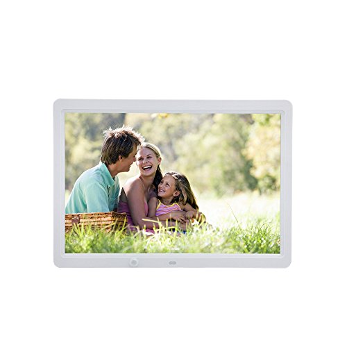 Digital Photo Frame, 15-Pollici Wide Motion Sensor HD LED Auto Switcher Pulsante Multi-Funzione pubblicità Macchina Fotografica Elettronica (Bianco)