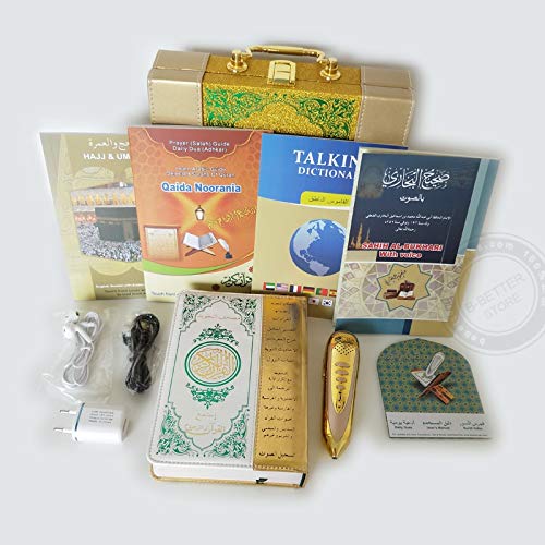 ☪ multifunzione: Quran penna di lettura in grado di leggere / Record / Repeat / e tradurre, completi recitazioni di voce del Santo Corano da parte di Al-Afasy, Abdul Basit, Ajmi, Aya e Al-Meaqli, liberamente passare fra i reciters e le traduzioni. lingua voci di default nella penna è l'arabo, inglese, urdu, francese e così via.