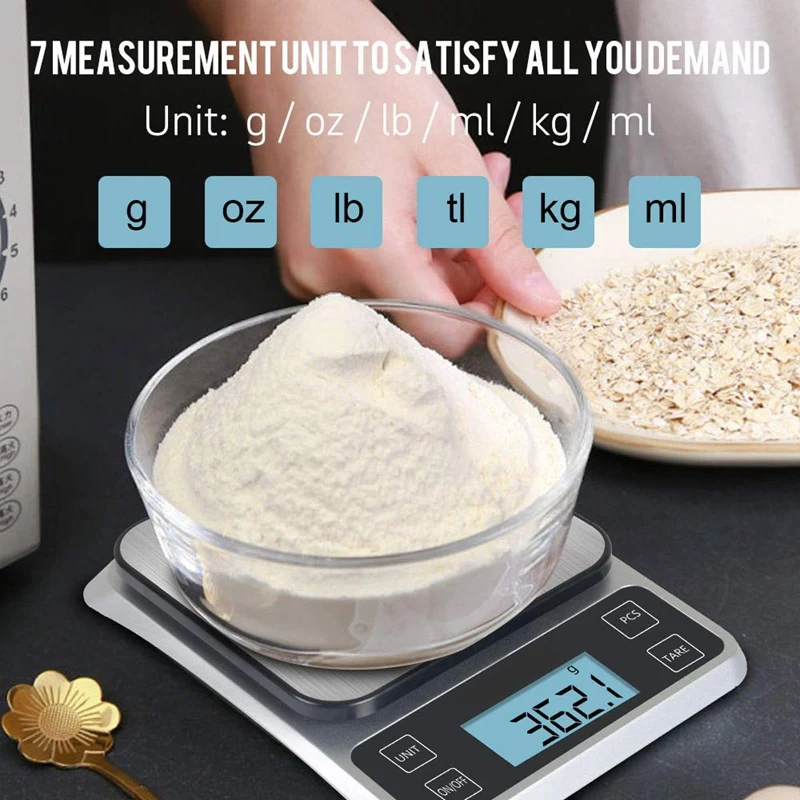 Digital Food Scale, 5000G/0.1G Kitchen Scale Weight Grams and Oz for Cooking Baking, Stainless Steel, HD LCD Display