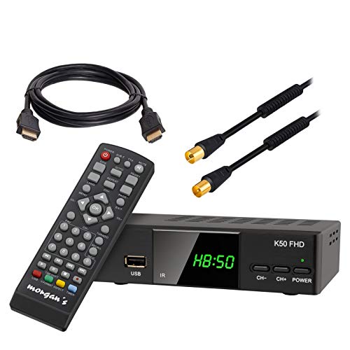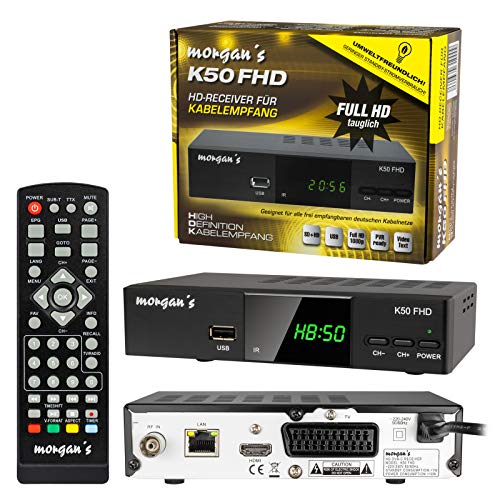 Set digitale HB: Micro ricevitore elettronico Microm22c HD per TV digitale DVB-C via cavo (HDMI, SCART, USB 2.0, LAN, lettore multimediale) 22c con cavo antenna HDTV placcato oro con filtro rivestito (opzionale) con cavo HDMI