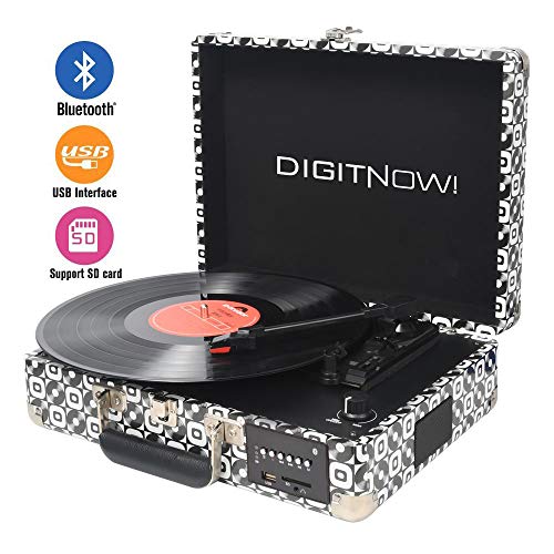 DIGITNOW! Bluetooth Vinile Giradischi, Portatile Convertitore Vinili con Altoparlanti Stereo Integrati e Pile,Supporto Aux in/USB/Codifica SD/Uscita RCA