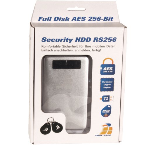 Contenuto della confezione: Digittrade RS256 Security, 2 chiavi RFID, cavo USB (anche per USB 3.0), cavo di alimentazione USB, custodia rigida e istruzioni (dt. & Engl.)