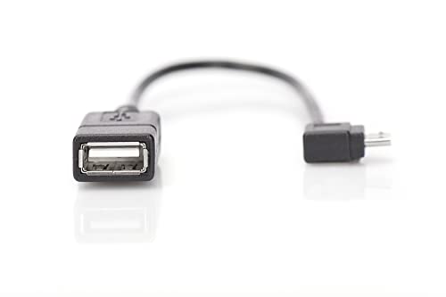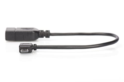 Digitus, CAVO ADATTATORE USB 2.0 OTG, CONNETTORI MICRO USB"B" MASCHIO - USB"A" FEMMINA, 15 CM CON CONNETTORE 90 GRADI, nero
