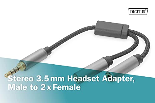 DIGITUS adattatore per cuffie stereo - 2x prese da 3,5 mm a jack da 3,5 mm - adattatore per microfono, cuffie - 0,2 m - nero - per smartphone, computer, laptop, controller di gioco