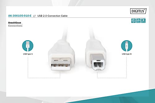 DIGITUS Cavo di collegamento USB 2.0-1,0 m - da USB A (M) a USB B (M) - 480 Mbit/s - Cavo di collegamento, Cavo USB - Beige