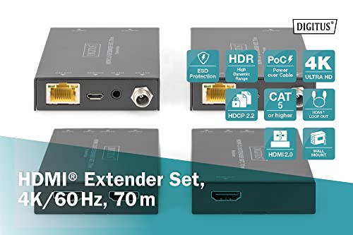 Digitus Set Extender HDMI 2.0, 70m 4K/60Hz, 18 Gbps, HDCP 2.2, HDR, PoC