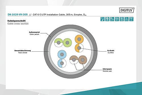 DIGITUS Cavo di installazione a doppino intrecciato Cat 6 F-UTP, Simplex - LSZH-1 - Dca, Cat-6 - F-UTP - 305m