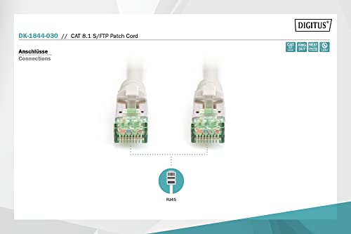 DIGITUS - Cavo patch Cat-8.1, 3 m, schermatura S-FTP, anima in rame, guaina LSZH, cavo di rete, colore: Grigio, Cat-8.1 - 3 m, Cavo patch - S-FTP - LSZH