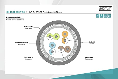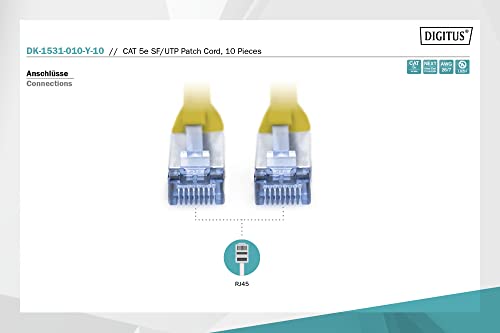 DIGITUS Cavo LAN Cat 5e - 1m - 10 pezzi - Cavo di rete RJ45 - schermato SF/UTP - Compatibile con Cat-6 e Cat-6A - Giallo