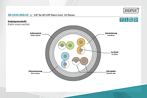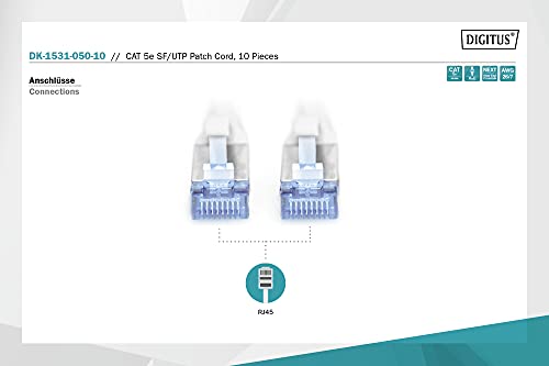 DIGITUS Cavo LAN Cat 5e - 5m - 10 pezzi - Cavo di rete RJ45 - schermato SF/UTP - Compatibile con Cat-6 e Cat-6A - Grigio