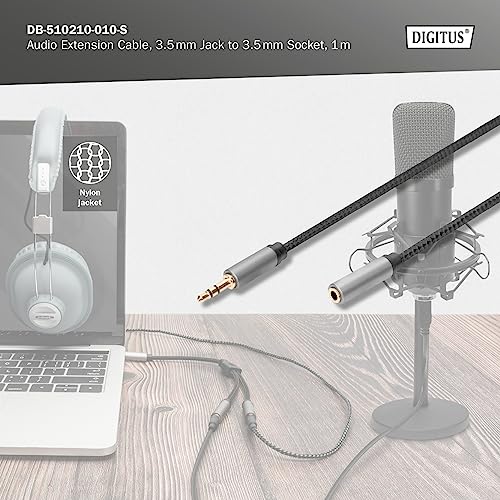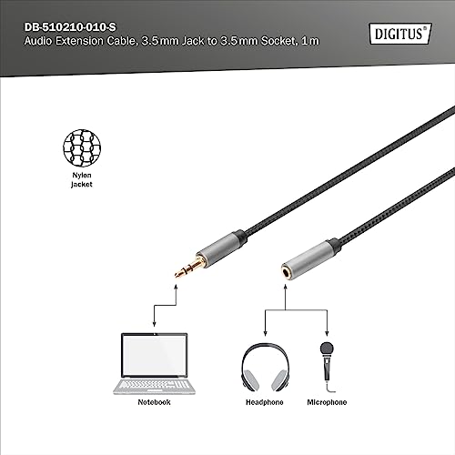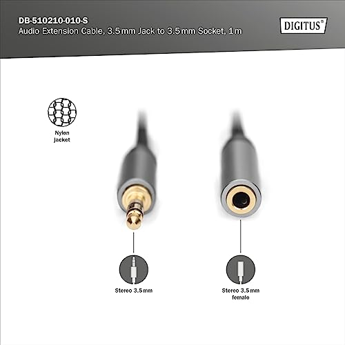 DIGITUS cavo di prolunga audio - jack da 3,5 mm a presa da 3,5 mm - cavo aux - cavo stereo - contatti placcati oro - 1 m - nero - per impianti stereo, home cinema, soundbar, computer