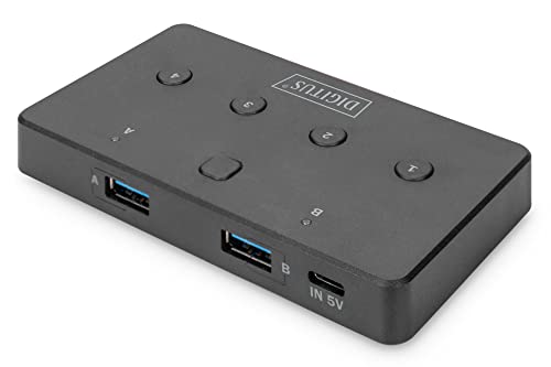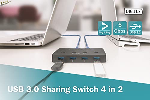 DIGITUS USB 3.0 Sharing Switch - 5 Gbps - condivisione di 4 dispositivi USB con 2 PC - commutazione dei dispositivi one-touch - LED di stato - plug & play - alimentazione USB-C - nero