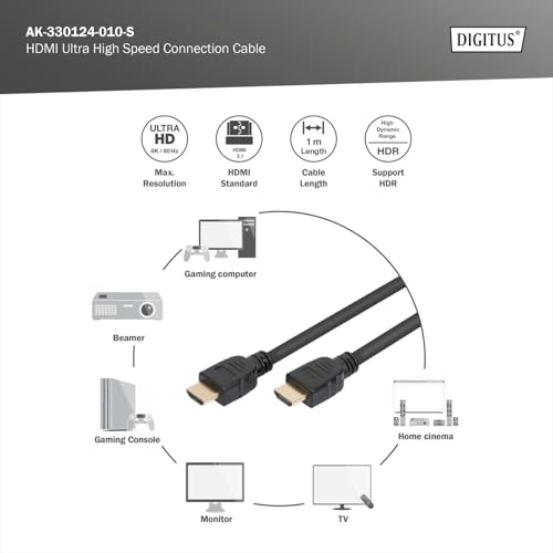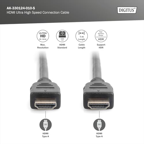 DIGITUS HDMI Ultra High Speed Connection Cable, 1.0 m, UHD 8K - HDMI - Tipo A