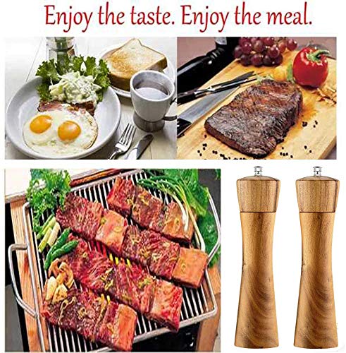 Digralne 8 inch Macina Sale e Pepe, Legno Pepper Mill macina Pepe Manuale, Sale Pepe in Legno Quercia, Smerigliatrice per Varie Spezie di Alta qualità (2 Pezzi)