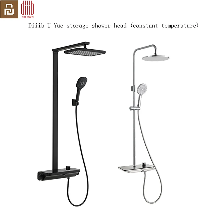 Diiib U-Yue Mirror Shelf Shower Head Set All Copper Mixer Silver Ion Antibacterial Square Top Spray Safe Thermostatic Handheld