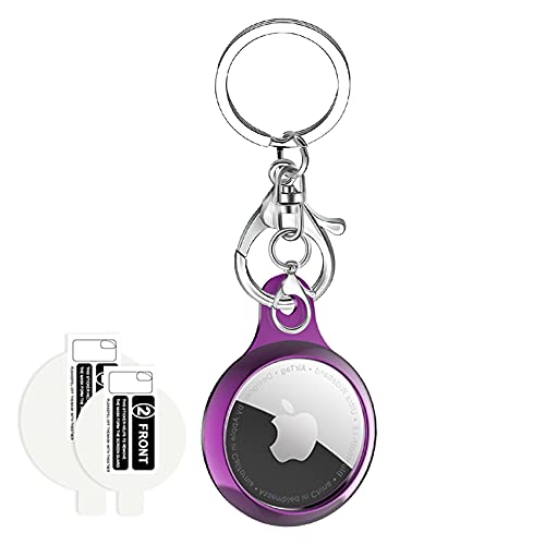 Dilhvy Cover per AirTag Custodia Protettiva in TPU Resistente ai Graffi Portatile con 2 Pezzi Pellicole Protettive,Accessorio per AirTags Bluetooth Tracker,Custodia con Portachiavi (Viola)