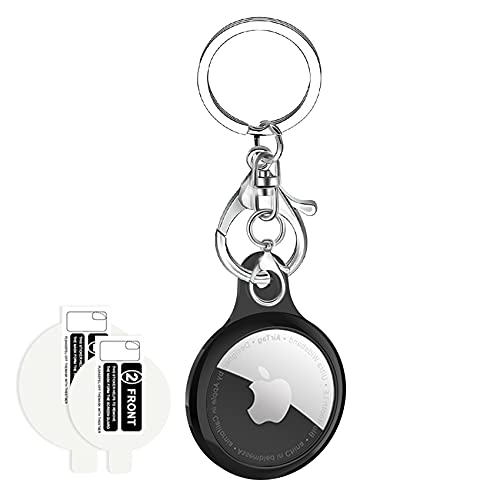 Dilhvy Cover per AirTag Custodia Protettiva in TPU Resistente ai Graffi Portatile con 2 Pezzi Pellicole Protettive,Accessorio per AirTags Bluetooth Tracker,Custodia con Portachiavi (Nero)